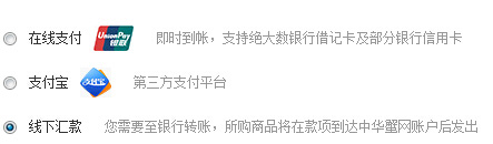为方便客户购买阳澄湖大闸蟹,本公司可以接受多种付款方式: